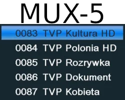 MUX1, MUX2, MUX3, niestety mimo wszelkich starań, nie jestem w stanie odebrać MUX-8 na paśmie VHF, ze względu na to że jego moc z nadajnika Wisła-Skrzyczne to zaledwie 1kW (w porównaniu z innymi 60kW i 100kW, na dodatek polaryzacja pionowa - nie wiem czy zastosowanie kolejnej 3 anteny miałby w ogóle sens, zresztą niepewny jest los tego pasma po roku 2021 a dla paru kanałów gra nie warta świeczki)