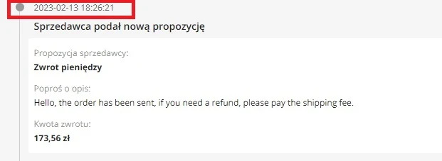 Okazuje się że złodziej bez honoru i jakichkolwiek zasad, rozpoczyna walczyć, ale walczy tak że to jest po prostu żałosne, na moje żądanie oddania całej kwoty, ten stawia swój warunek że odda ale chce około 50 zł za dostawę (170 zł zamiast 216 zł)